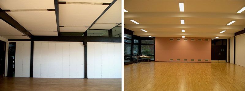 Bei der geforderten brandschutztechnischen Sanierung des 70er Jahre Bürgerhauses in der hessischen Wetterau konnten energetische, raumakustische und gestalterische Maßnahmen optimiert werden.