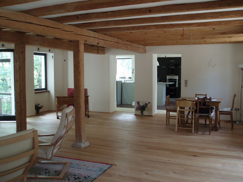 „Wohnen am Fluss“ war das Motto bei diesem Projekt. Die ehemalige Mühle, das Müllershaus und Nebengebäude boten eine traumhafte Grundlage für großzügige Wohn- und Geschäftsräume.